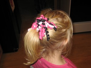 I also spent some time making ponytail toppers for Brooke today. I had picked one up at a Bazaar on Saturday and figured I could make them myself. She needs fancy hair ideas for ballet class, and these clips work great! So easy to do, too!
