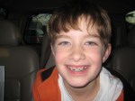 We went to Costco for dinner- and we let him have the Berry Smoothie for dinner (not something we would ever do otherwise). By the time we got home, he said his mouth was starting to get sore. But he wanted an apple- so I THINLY sliced it for him and he ate most of it. Another dose of Motrin and he put his headgear on and sat in front of the TV, falling asleep by 9:00.