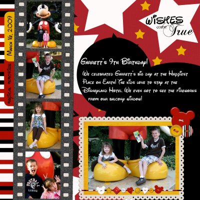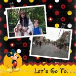 But after finishing my book, I decided to get a head start on my next book: our 2010 Disneyland Vacation storybook. I made one in 2008, so already had some papers and embellishments from a Creative Memories pre-designed Disney kit that I purchased a couple years ago. But I didn’t want this next book to be identical to the last, and Creative Memories hasn’t released any new “Disney” themes for their digital software. Maybe they will this summer, who knows.