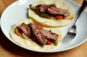 So you saw my Garlic Lime Chicken recipe… I tried it out with some steak the other night, with a few modifications. Basically, I used the mixture as a marinade. My plan was to make fajitas with the steak, so I thinly cut the meat into strips, marinated them in a baggie for 2 days. Sauteed them in some melted butter and the steak strips were DIVINE.