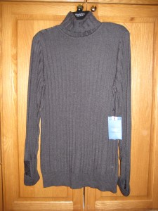 It’s your basic black/dark gray turtleneck sweater, but I like the sleeve details and it’s also semi-fitted and longer than normal.