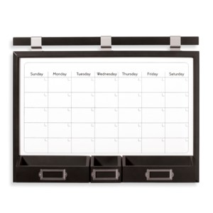 Over the weekend I took the girls shopping for party supplies for Riley’s birthday. We went to Craft Warehouse and I saw a display of calendars and found one that I thought would be perfect! It was white, made of a dry-erase board, but magnetic, and framed in black. It looked really nice. It also had a storage box attached where I could keep my dry-erase markers, or if I had magnetic date tiles I could use it to holdl those….so I loaded it into my cart. It was on sale for $19.99.
