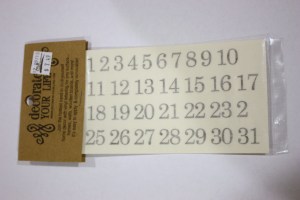 Step five: put a date on each disc using rub-on numbers. (I had actually purchased a pack at Craft Warehouse, but saw that I had paid $7.50 for them AND it was missing the 4 from 24! Ouch! So I used my Cricut instead and cut out all the dates in 1/2″ font using Cricut Vinyl. Easy cheesy!)