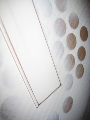 The obvious dilemma- how to get those squares to stick to the calendar? I could use tape, but that seems cheap and how will I re-use the squares again without damaging them or getting them stuck together. I could use velcro, but I really didn’t want to cover my calendar with velcro fuzzies- that would drive me nuts! So I picked up some vinyl business card holders and cut them in half and glued them to the calendar to hold the date squares. It worked perfectly!