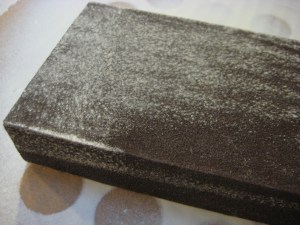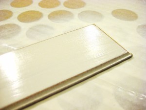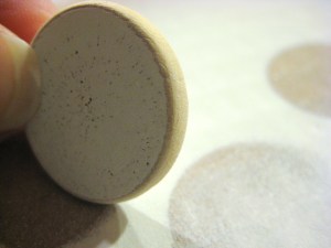 Step three: once the discs and plaque are dry, use a sanding block to rough sand the edges for a more rustic look.