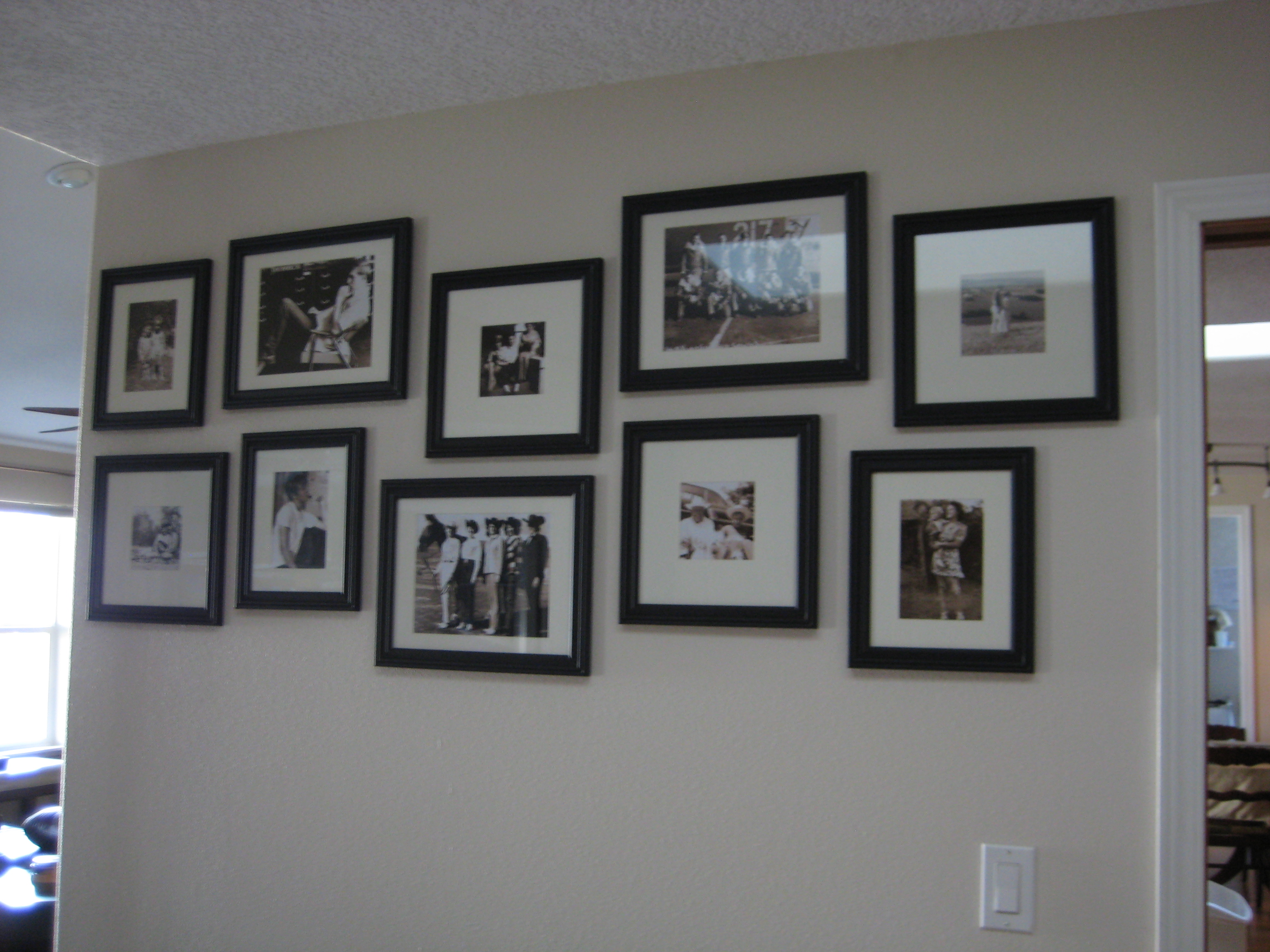 We had three 10×13 frames hanging on that wall, each housing an 8×10 recent photograph of the kids. I took them down and decided the photo collage would go there.