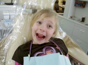 The doctor put the cotton swab of numbing agent on her gums…waited a few minutes and administered the shots…she didn’t even flinch.  (Later she told Trevor she didn’t even get any shots- guess she had no idea what he was doing!).