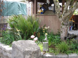 So then I thought someplace against the house…but I won’t be able to see it from inside the house, and those things can get pretty big. I only have a tiny space between the house and the path.