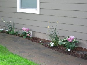 I think the first mistake is that these guys love a lot of soil and I think we planted them too bare. Secondly, I read today that they like full to partial sun. I think the japanese maple may be providing too much shade. The only sun they get is first thing in the morning. Thirdly, the folks at Farmington Gardens told me that the base stems for these plants are extremely fragile, that even wind can aggrivate them and cause damage. Ok then. I remember raking around them in the winter and not being so ginger. Oopsie. I may have killed them. I added more soil and I’ve been fertilizing and watering them hoping they will miraculously come back to life. Time will tell.