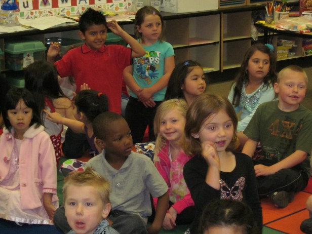 Above: Back in the classroom before the class party.