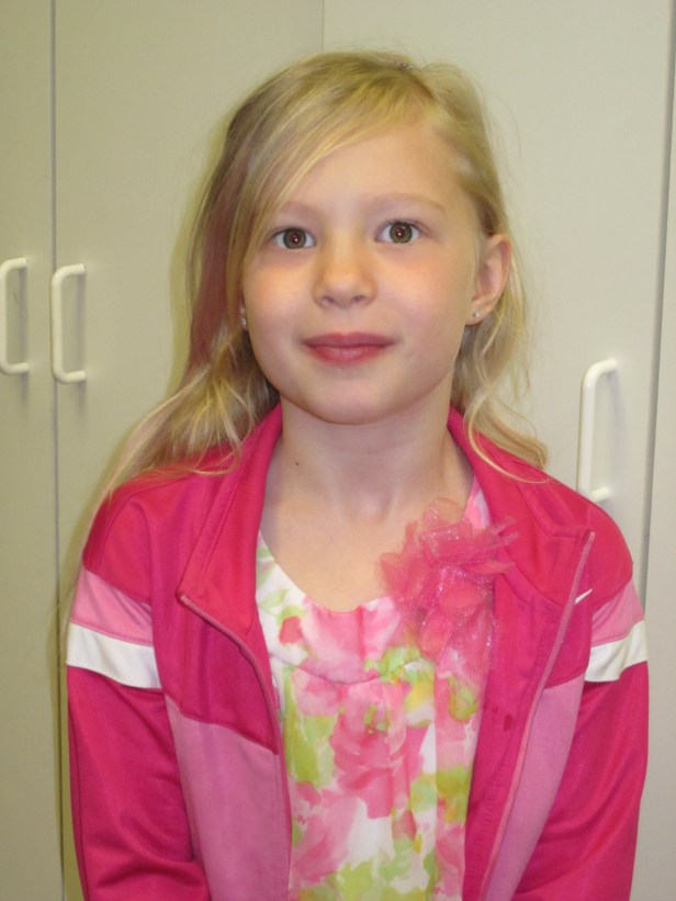 Above: Front row in the pink flowery dress with the pink athletic jacket and black tights/heels. I didn’t dress her.