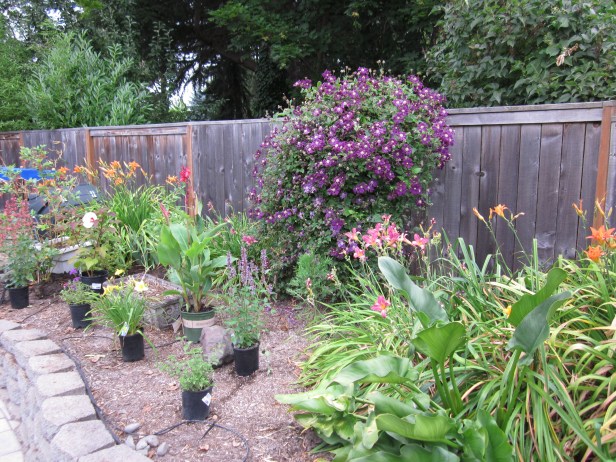 For now these are all sitting in their pots, and sometime in the next couple weeks (after our party) we will plant them in their new locations.