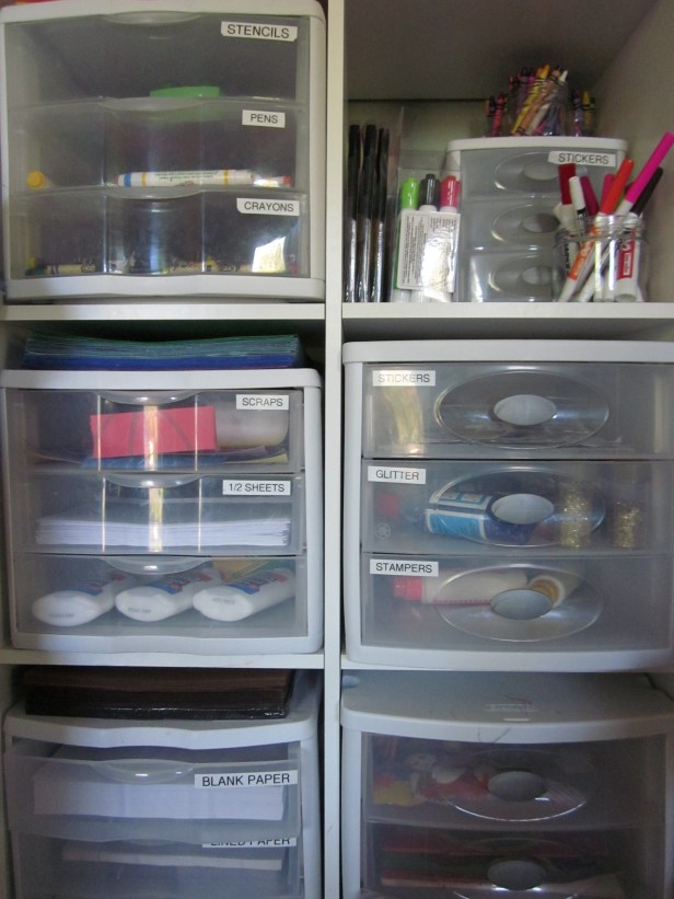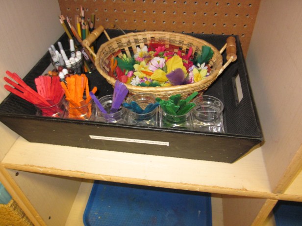 For years I gave the kids free access to crayons, markers, papers- construction, solid white, lined notebook, colored scraps, etc., envelopes, stickers, punches and paper shapes….lots of stuff they could use whenever they wanted.