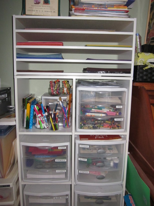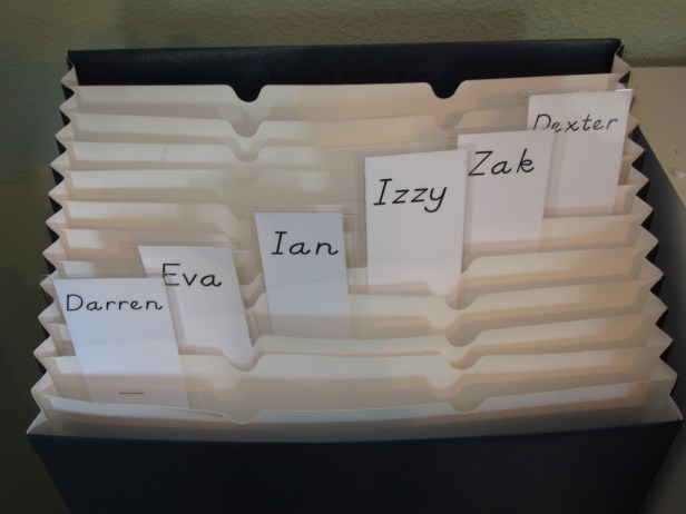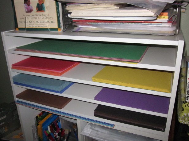 Here’s the construction paper organizer I made, too!