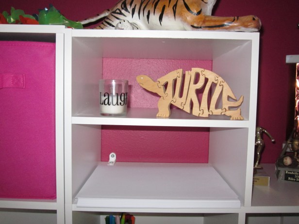 I had 6 sides leftover, which I assembled into a divided cubby for Riley’s room: