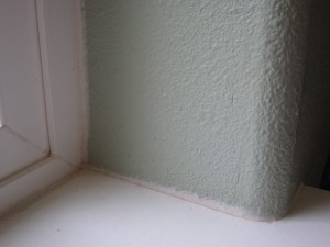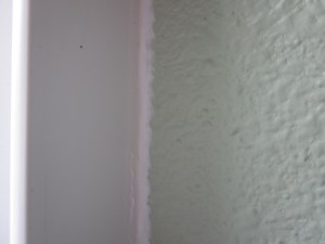 Anyway, I’m already dreading repainting the walls around the windows. We have wrapped sheetrock and it was a bear to caulk and get a clean line…as you can see from these images I did NOT get a clean line!