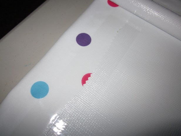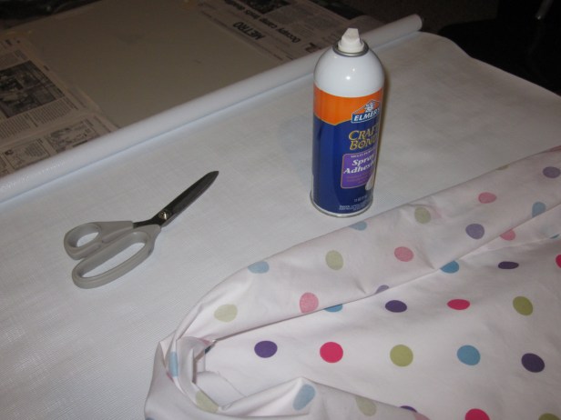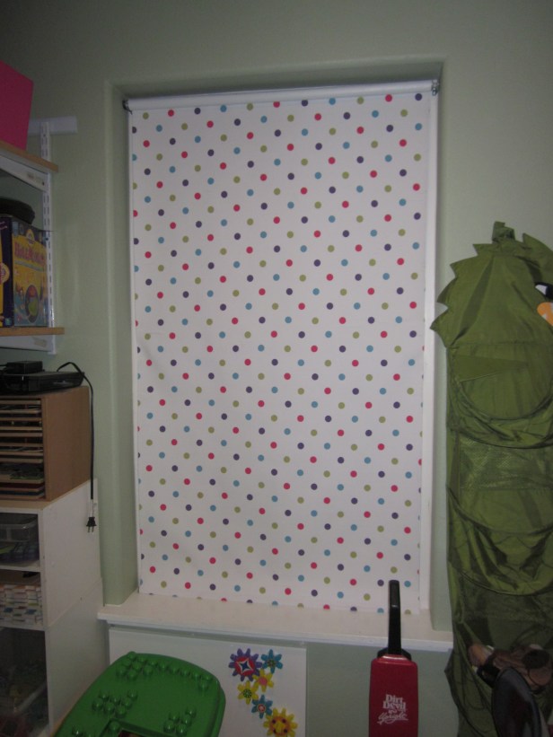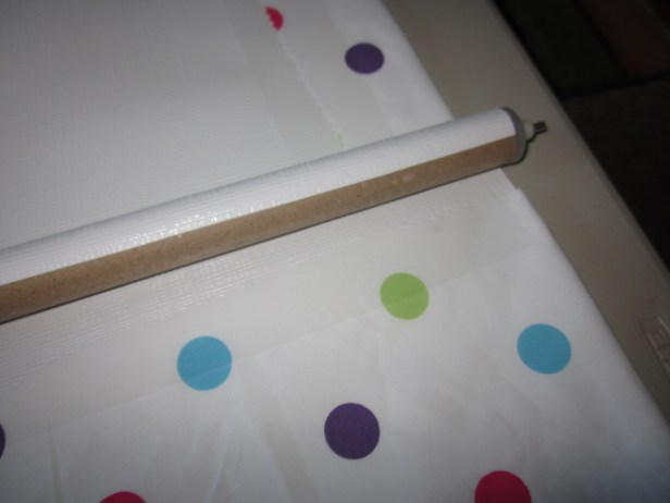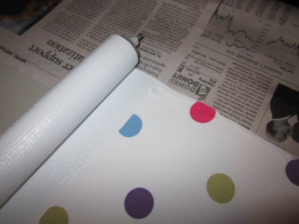 I covered the playroom table with newspaper and unrolled the roller shade out onto the table.