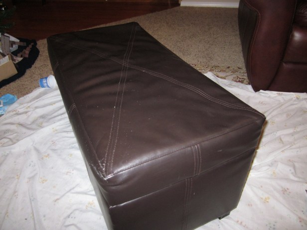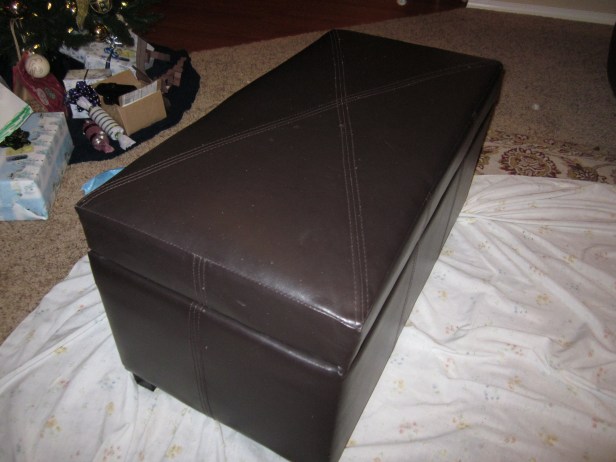 We purchased two matching storage ottomans from Target over a year ago, and recently they’ve both been looking quite sad. There’s just no more “coosh” left in the cushion top. They look saggy and worn and when you sit on them you can feel that there’s no foam left inside- and you can feel the (assumed) wood frame. Not comfortable at all.