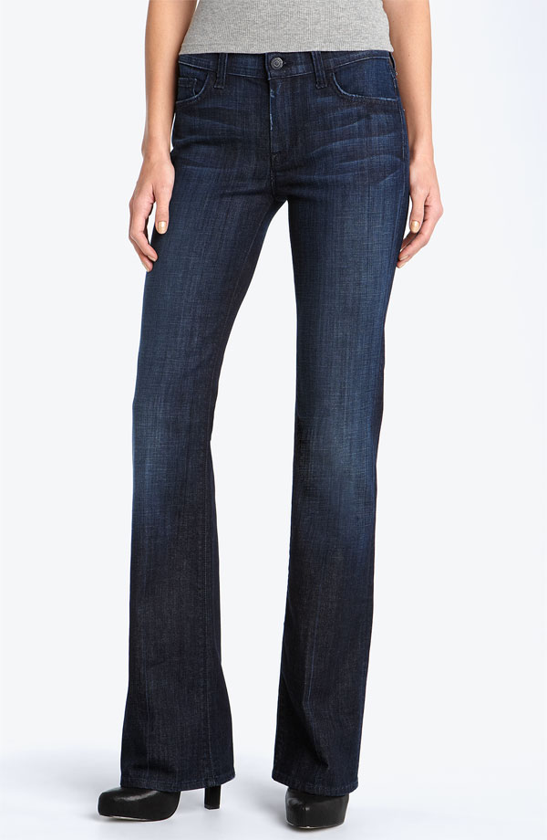 I started out at Nordstrom Rack and bought a pair of “7 For All Mankind” super dark denim in a bootcut to wear as a dressy jean. The pair I have are even darker than the image below. They were regularly $169 and I got them for $99.00.