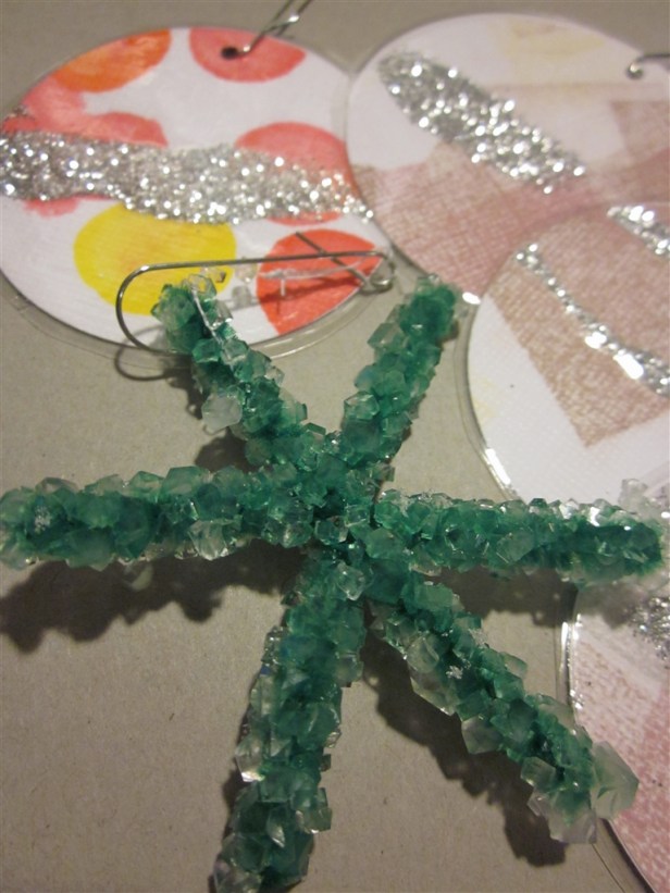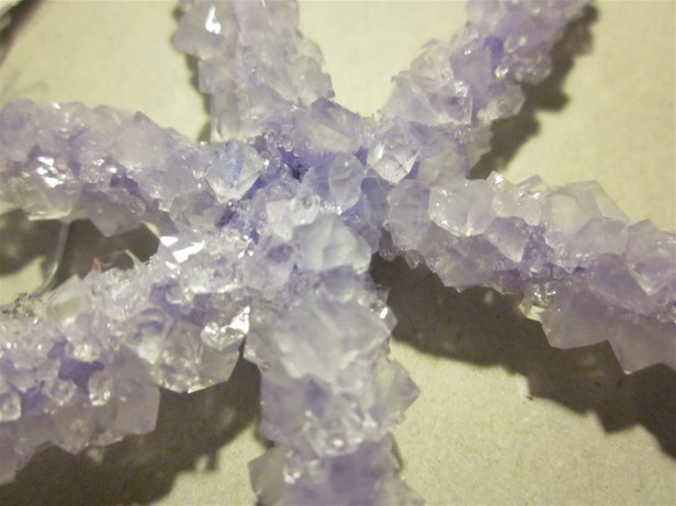 Someone had posted “snowflakes” like this on one of the Daycare Facebook pages I belong to, along with instructions on how to make them….so I “borrowed” a box of Borax soap from one of my daycare families and followed the instructions and voila!