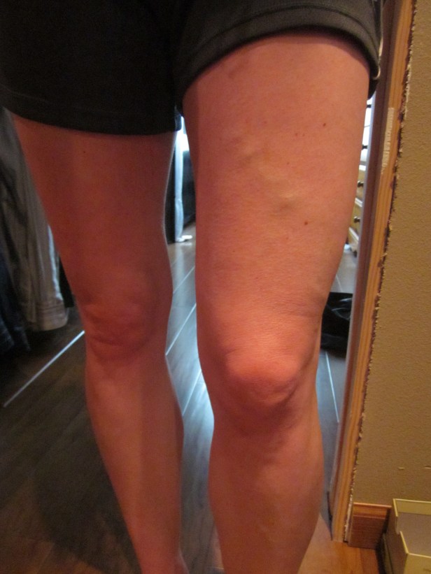 Last night and today I am noticing LOTS of twitching in my calves. And when I’m on the elliptical some spots on my leg feel cold. I’ll be asking about these things at my appointment on Friday. I’ll keep you posted. Oh, and here’s how my legs look four days after treatment…not nearly as bad as they did the first couple days….geez!