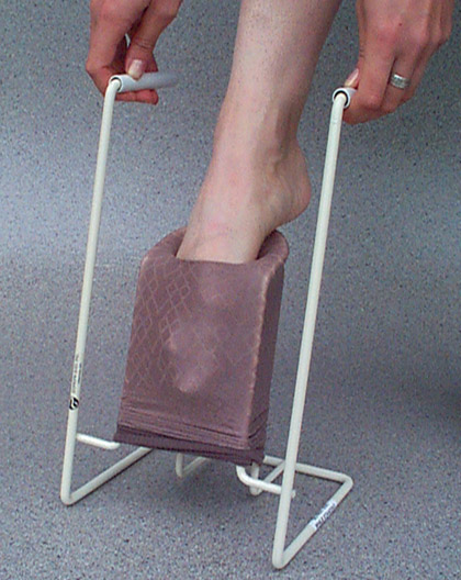 I’m pretty used to the tights now. And I’m super excited that I can shower tonight! I’m a little worried about getting the stockings on and off- they are uber uber uber skin tight from the ankles down. They had to use one of those donning devices to get them ON my feet. It looks something like this: