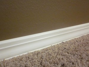 After that I did another coat of white paint on the trim throughout the house (family room, living room, pass thru, hallway, all 7 door jambs in the hallway, etc). Then I taped off the trim in the playroom and started caulking- ALL the trim. I’m so happy with how they came out!! I’ve been a fan of caulking trim, but always did it without tape so it was never a perfect line….now I have perfect lines! I couldn’t stop there- I busted out the colored caulk to do the trim in the dining room, too! Clean-up from all of these projects began about 4:00 and by 6:00 everything was cleaned up and put away, furniture back where it belongs (except for the playroom). I’m loving our crisp lines!! (Again, no before pictures).