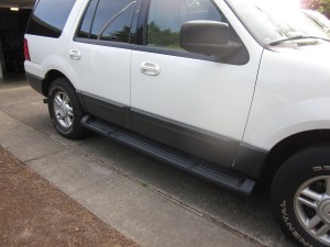 Tuesday: up early again. My outside morning project was scrubbing the cladding on my Ford Expedition with a SOS pad to try to remove some of the oxidation which has lightened the plastic. I should have taken a before picture. The image below isn’t MY vehicle, but this is what the door cladding looked like (discolored to a light gray instead of dark gray):