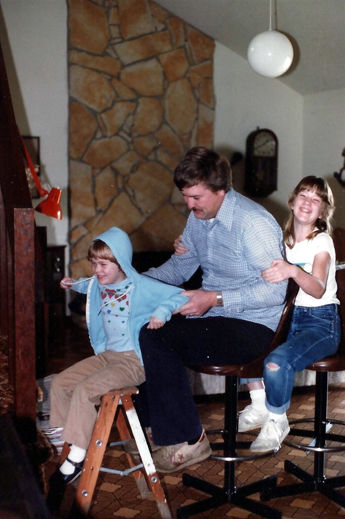 Here’s me, my sister and Dad playing “choo choo train”: