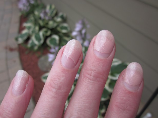 I walked out of the salon with 100% dry, hardened, ultra glossy nails in a sparkly nudish color.