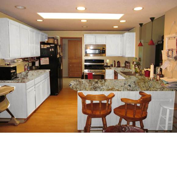 Let’s play with photo-editing and see if I can create a blended photo with the granite slab countertop:
