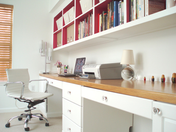 So that got me thinking…you know, we COULD do that! We had the Expedit bookcase in the office for a while and everything still fit in the room just fine, so I know we have at least 15″ depth on the backwall to play with. Plus that wall has the high vaulted ceilings- so even more storage if we wanted to go all out. And the current computer wall that houses the giant filing cabinet, the ugly desk, and funky rolling cart- we could do a super long table surface on that wall, too, with upper shelving, and if everything was matchy matchy and the same depth we’d still have room for our weight stuff in the middle. Hmmm…..