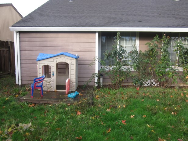 The only “good” thing is- they left their little playhouse behind. After closing, I guess it would become “ours” and with a little pressure washing I’ll have a great indoor playhouse for the daycare. Ha!