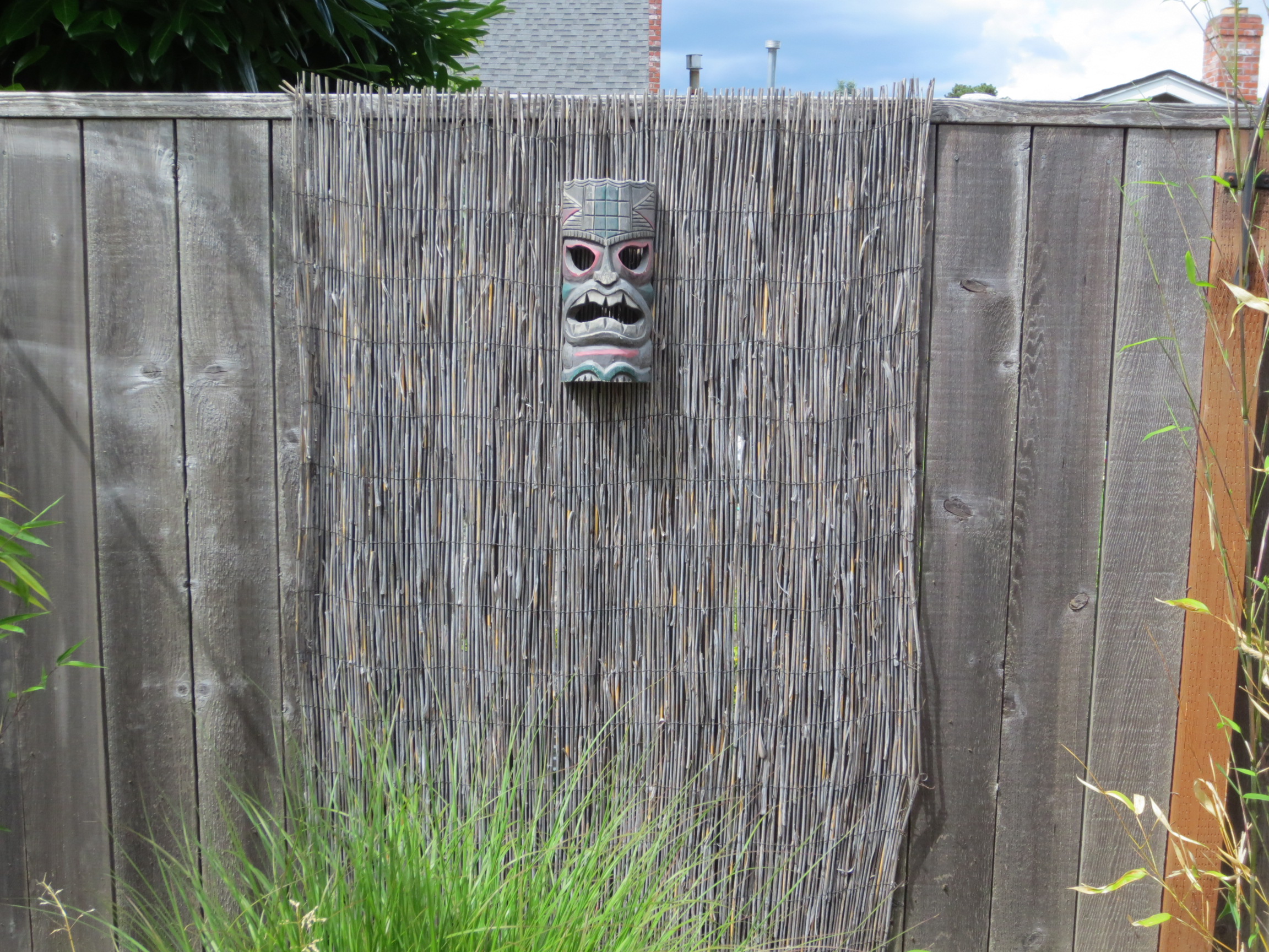 The tiki head was a garage sale find that we HAD to have! We hung it in the area reserved for “Jim’s Tent of Terror” when we have our Summer BBQ party… lol! Now we’re looking for skulls and other tiki/voodoo/terror type items to use for the tent.