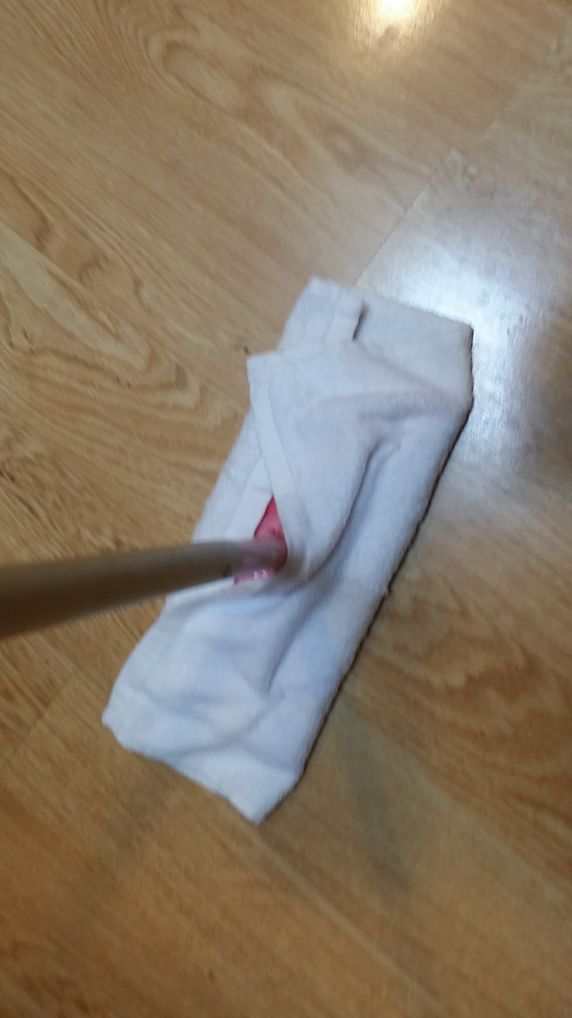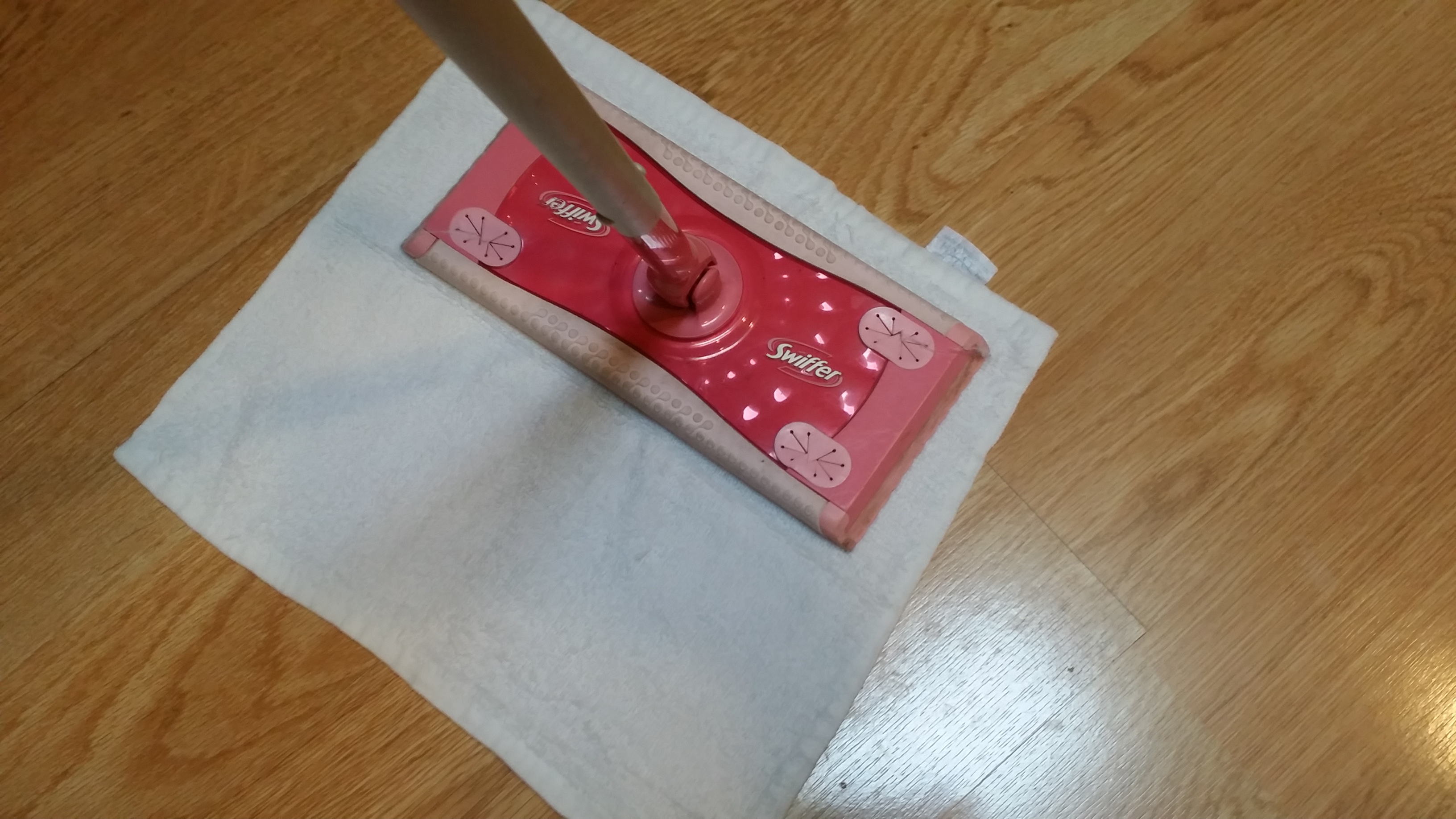 Anyway, we ran out. I finally wiped out my ginormous Costco supply (I stock up whenever they go on sale) and I was determined to NOT purchase them again. But how am I going to clean my floors every day? Certainly not with an old-fashioned mop (waaaay too wet for laminate flooring) and I’m not about to purchase another chemical product or some new-fangled trendy Scooba or something like that.