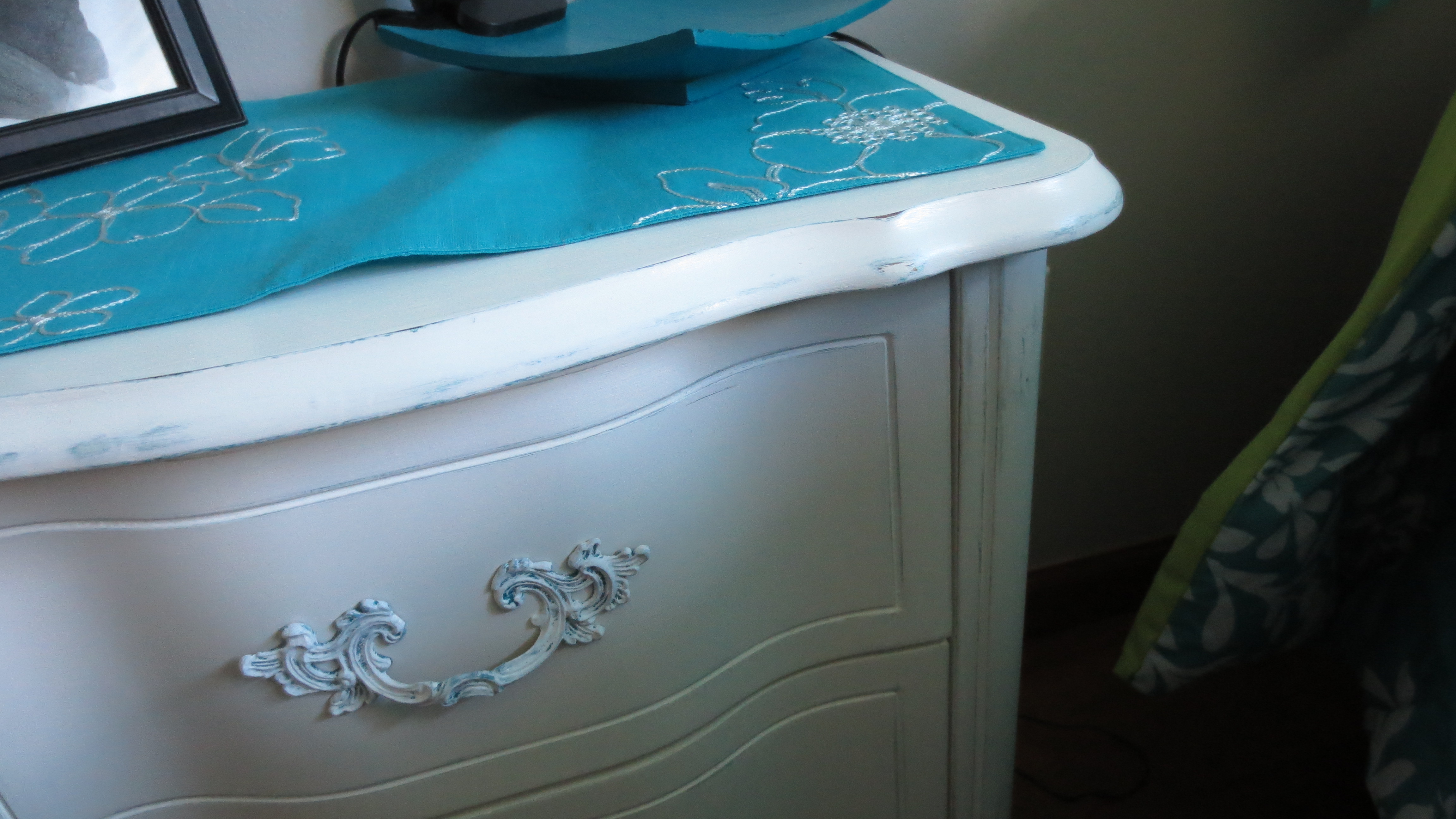 I knew I wanted to paint the nightstand white, but I wanted to give it a distressed look. When I Googled “distressing white furniture” the trend seems to be distressing with chalk paint. So I decided to give it a go!