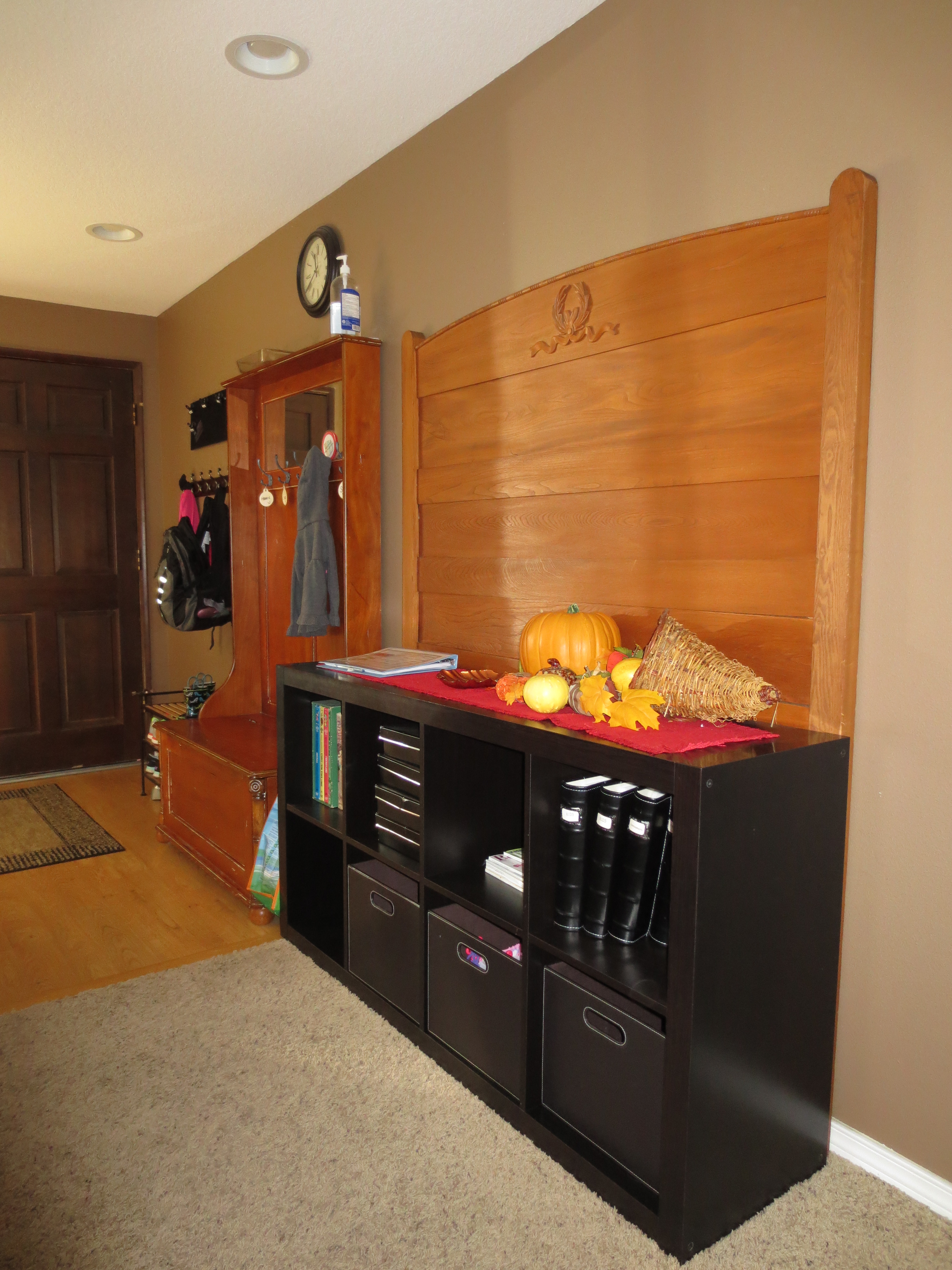Side note- we still haven’t touched the antique bed frame. The headboard is now sitting as a backdrop in our front entry- getting lots of love there.