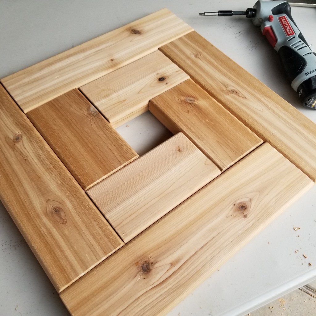 I played around with 2x4s, but I really like the look of my rounded 1×4’s, and I really liked the look of Pinterest find # 1- so maybe I’ll just do something similar. Built a simple box frame.