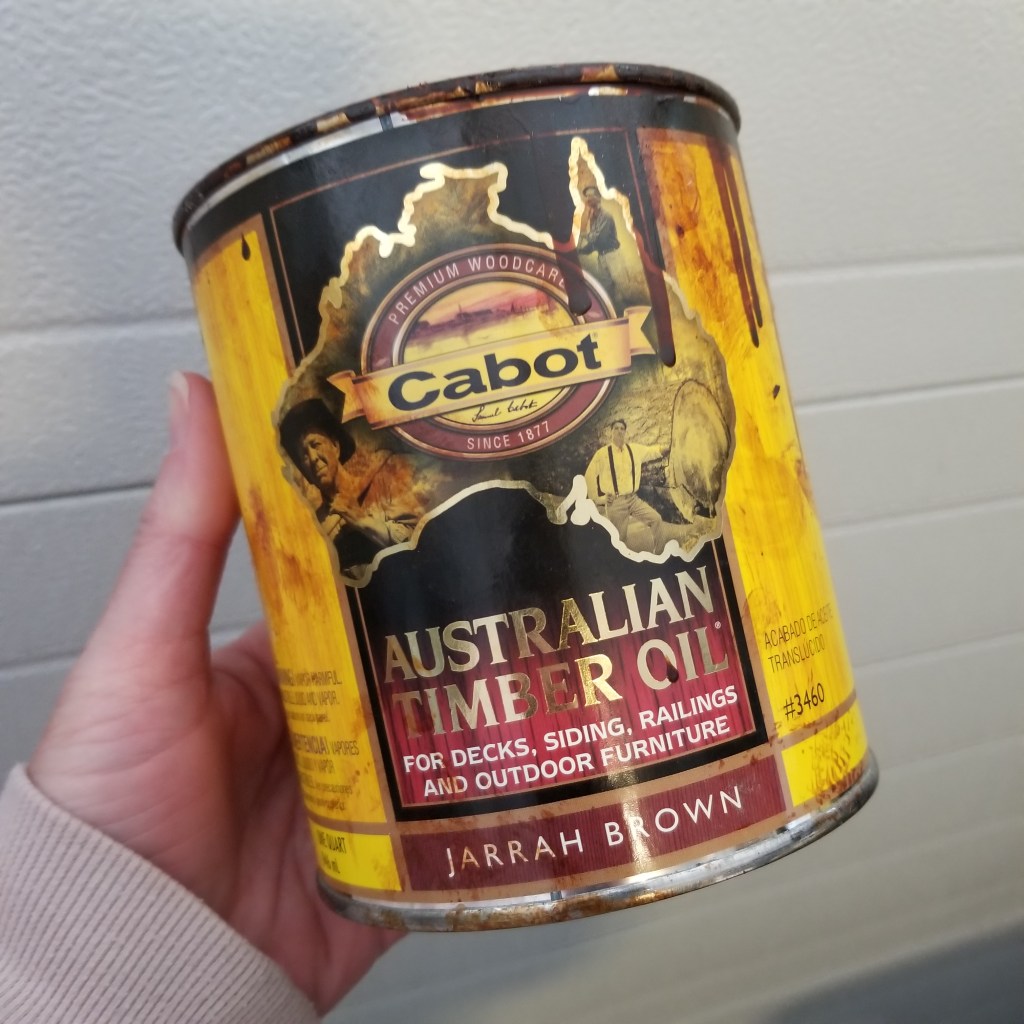 The next step was to stain it of course. We had some leftover stain from our patio table project (from MANY years ago) so I used that…