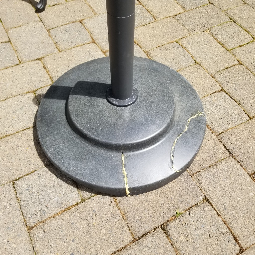 Then I did a test fitting on the umbrella stand to see how I needed to construct the base (no pics, sorry).