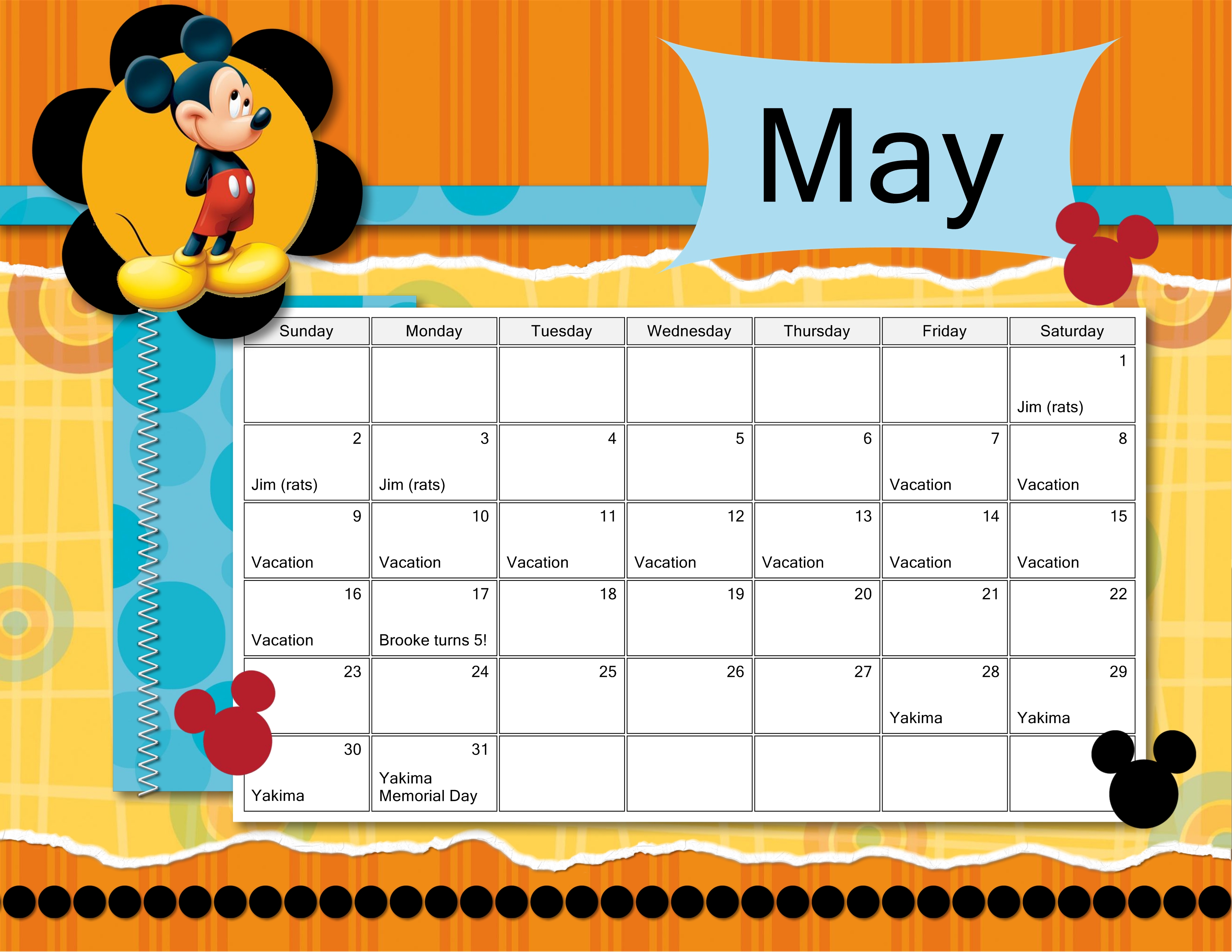 Custom Calendar Page (for fridge)